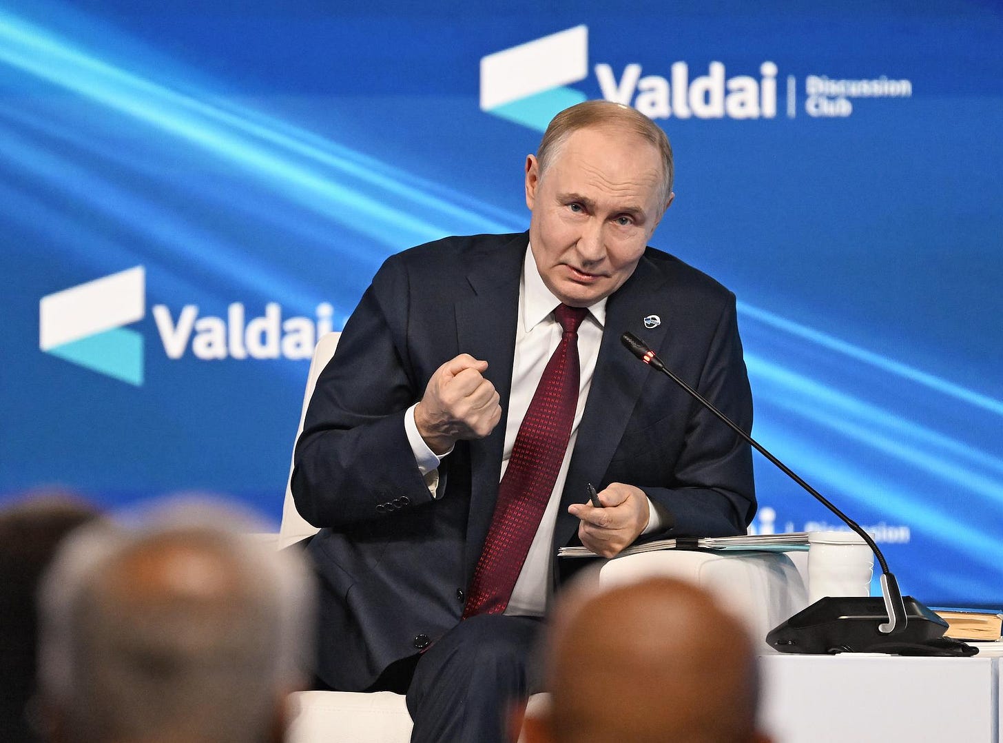 At Valdai, Putin argued that European elites were fueling hysteria over the possible outbreak of war with Russia, and that Europeâs hawkish position on the fighting in Ukraine means itâs impossible to find a compromise peace.